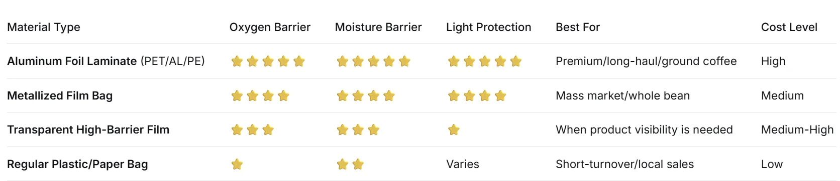 Core Message: Packaging is coffee’s “time capsule.” Choose the right materials to lock in freshness.