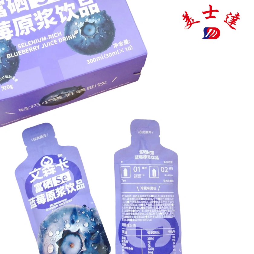 Utilizing multi-layer co-extruded or aluminum foil laminated films, our pouches offer exceptional barrier properties against oxygen and light. This is crucial for preserving the delicate antioxidants, vitamins, and the added selenium content in blueberry juice, preventing oxidation and nutrient degradation to maintain product efficacy and taste. - Precision Sealing for Leak-Proof Assurance