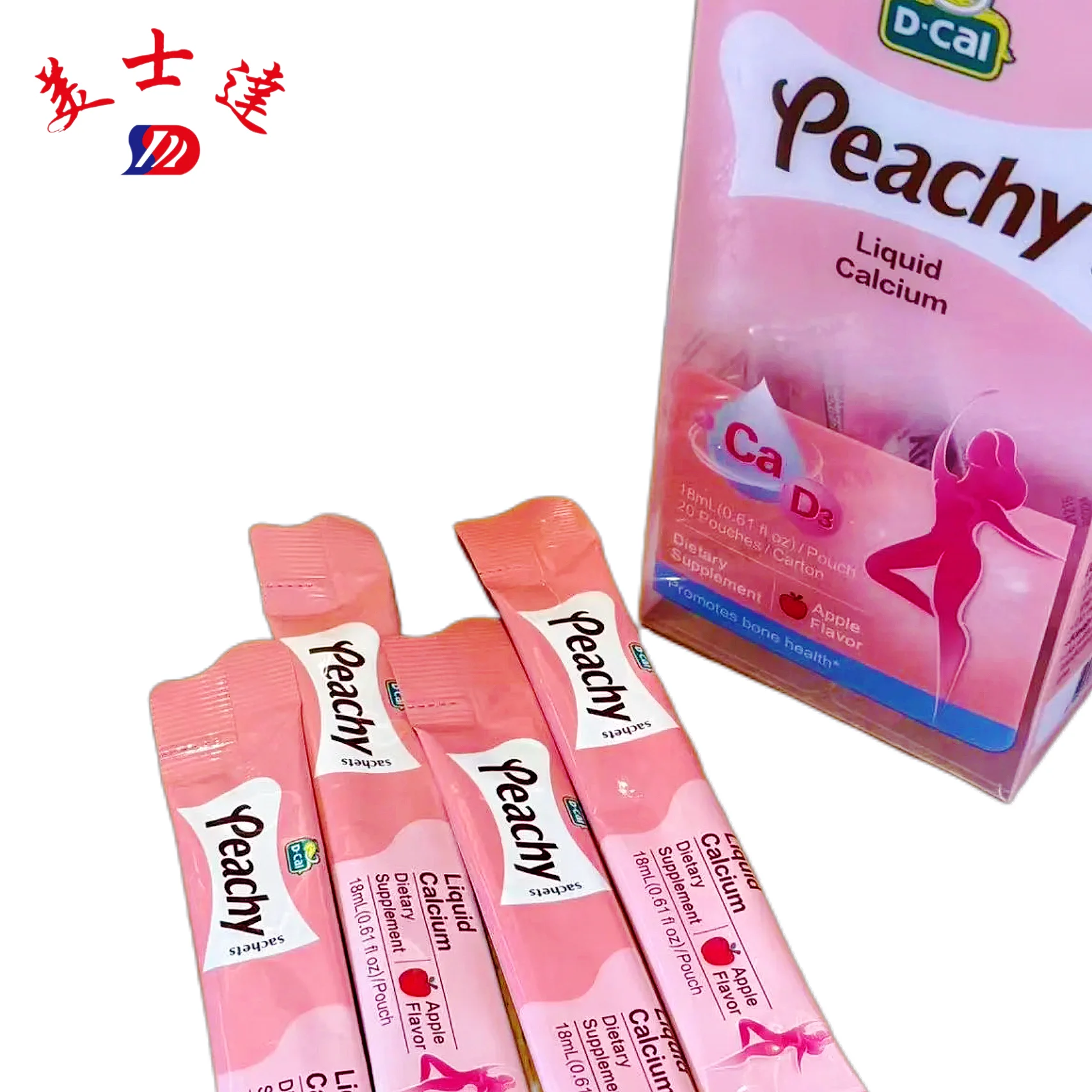 Meishida specializes in precision pouch packaging for liquid nutritional supplements such as liquid calcium with vitamin D3, using high-barrier films, easy-tear notches, and food-grade materials. Our packaging effectively preserves ingredient stability and bioavailability. Produced in Class 100,000 cleanrooms under GMP standards, we offer complete OEM/ODM packaging solutions for dietary supplement brands.